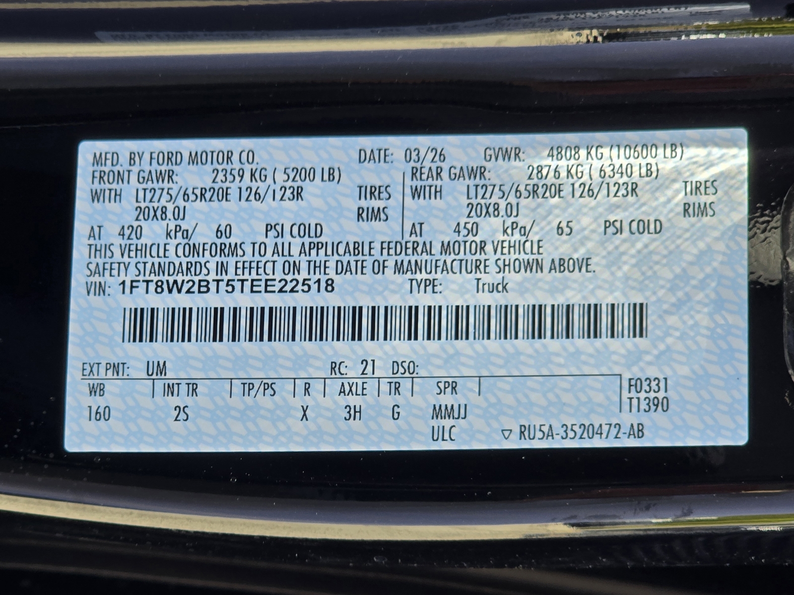 - VIN1FT8W2BT5TEE22518