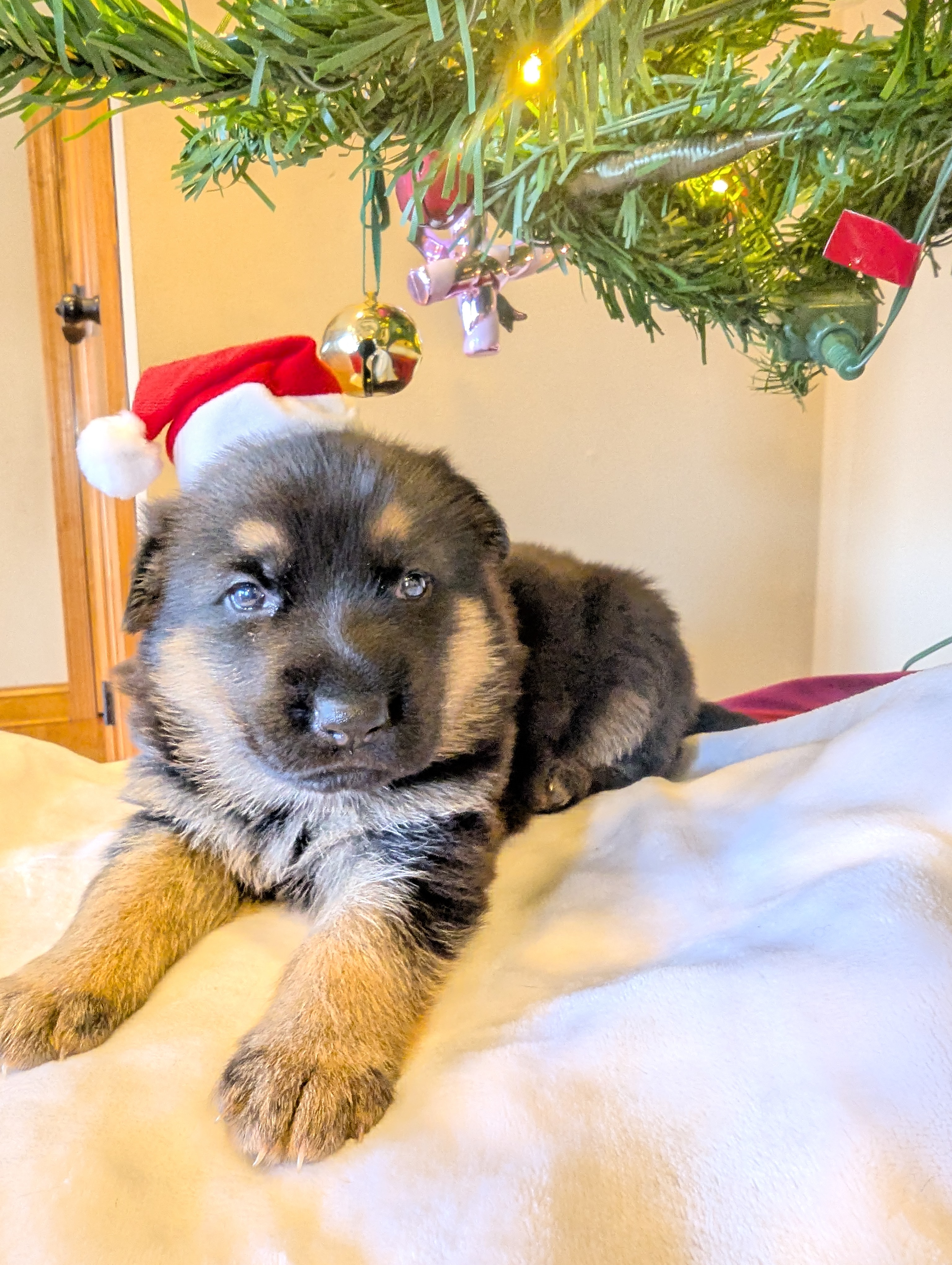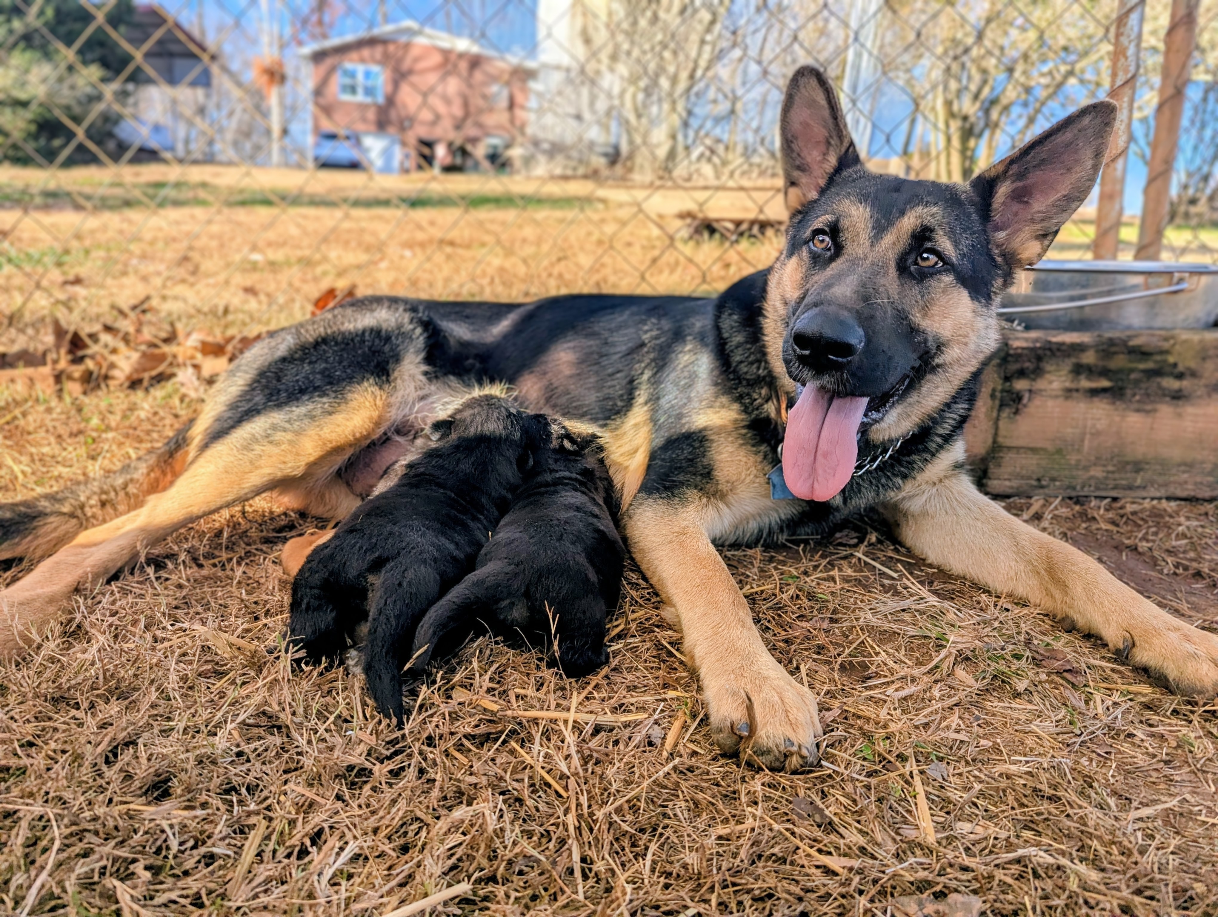 The best of both worlds! 2 GS puppies from AKC registered, Magnus, black and red male (2024 Seiger 5th) and Mayce (by-color,) working line female. Ready for Christmas. Come with shots, health screening, and papers.