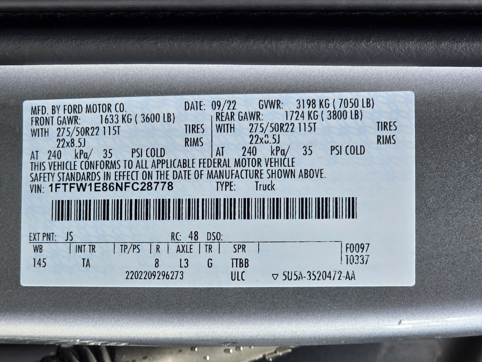 2022 Ford F-150 Limited Tweet Report Ad $55,920 Previous Next VIN1FTFW1E86NFC28778 SeriesLimited Mileage30,709 ColorSilver Int. ColorAdmiral Blue Transmission10-Speed Automatic Engine6 Cylinder Body Style4x4 Limited 4dr SuperCrew 5.5 ft. SB Stock #LU0721 call now click to reveal number send email Forest City, NC: view on map Legendary Ford send email Ask questions about this ad Your Name: Your Email: Your Phone #: Message: < Back to Results